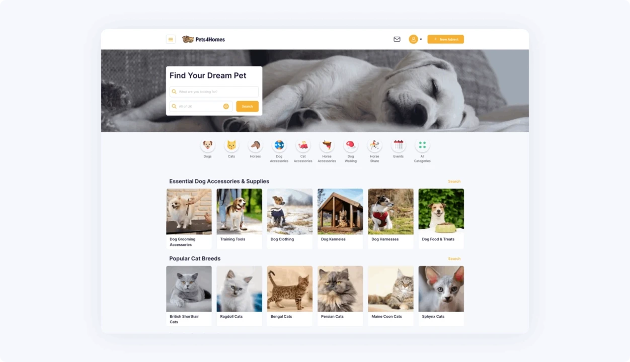 After acquiring marketplaces like Pets4Homes (UK's largest pet platform with 7 million users), Hästnet (Sweden's horse marketplace), Annunci Animali (Italy), and PuppyPlaats (Netherlands), Pet Media Group faced a serious problem. Each platform operated independently with different codebases, technologies, and data structures. Managing them separately was killing efficiency and blocking the company's growth plans.